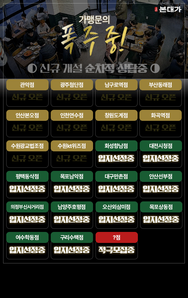 유행 타지 않는 외식업 창업을 찾으신다면, 본대가도 좋은 선택입니다